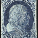 At Robert A Siegel's ongoing auction of rare United States stamps, a number of variations of the 1c blue have gone up for auction yesterday and today which were somewhere in between.
