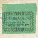 The cover sports a 2pi black on green glazed paper stamp, taken from the foot of the sheet with 4mm margin and ornaments complete on the other sides, tied by blue four line cachet to the cover.