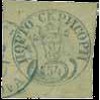 The first, a 54 parales green on greenish-blue laid paper, boasts fresh colours with large to enormous margins all round. It bears a partial Fokschani circular date stamp in blue - a scarce cancellation on a rare stamp. It is listed at £3,600.