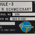 ![]() Apollo 9 Lunar Module Flown LM-3 Spacecraft Identification plate |