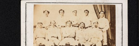 Heritage explains: "Even dismissing its popular status as the first true baseball card--a matter of some debate--this fantastically scarce relic would rank as one of the greatest treasures of the early game, providing a magnificent team photograph of the 'Red Stocking B.B. Club of Cincinnati,' the game's first professional team."