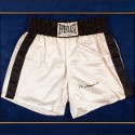 In an effort to raise money for the multiple-sclerosis charity MS-UK, a pair of Muhammad Ali and George Foreman signed shorts will sell on March 16 in Norfolk, UK.
