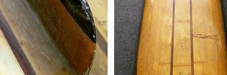 "Pre-war boards for the most part had been redwood-balsa composites coated in varnish; Simmons, working out of his garage in Pasadena, used balsa only and was one of the first to cover his boards with a layer of resin-saturated fiberglass.