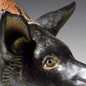 Moulded into the shape of a Laconian dog, the rhyton comes from the ancient Greek colony of Apulia, in what is now southern Italy. The vessel was designed with a wide mouth at one end, with the other pierced with a small hole.