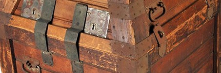 The lot, built in around 1909, consists of a heavy wooden crate fitted with numerous locks.