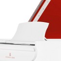 The maple and Alaskan Sitka spruce piano features a custom colour combination of white and red along with silver-plate and nickel components.