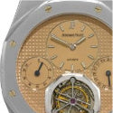 The rare limited edition stainless steel-cased automatic tourbillon bracelet watch with power reserve and date from circa 1997 sold near the top of its £60,000—80,000 estimate range for £73,250 ($116,000).