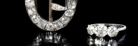 The ring realised 21,875 ($35,141) up 337.5% against a 5,000 ($8,032) estimate, while the brooch beat its valuation of 8,000 ($12,851) by 237.5% to take 27,500.