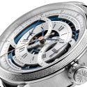 Grieb & Benzinger describes its new rare Blue Ocean wristwatch as "a skeletonised monopusher chronograph based on a column wheel chronograph movement from 1926." The watch's movement is housed in solid platinum with a guilloché platinum crown button.