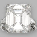 However, there was no doubt about the top lot: a classic Harry Winston ring set with a 16 carat emerald-cut diamond. Size 6½, with the main stone flanked by tapered baguette diamonds, it is accompanied by a GIA (Gemological Institute of America) report stating that the diamond is of I colour, VS1 clarity, justifying its listing of $300,000-400,000.