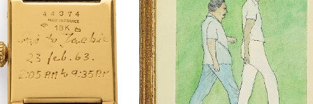 The watch is accompanied by a painting by Jacqueline Kennedy