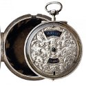 The circa 1710 silver timepiece, made by the German craftsman in London, incorporates a rare shutter display system, which replaces the more traditional dials.