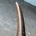 "The rhino stands 37in high with its neck on the ground. The larger horn is 16.25in long from the top of head and about 14in long on the underside. The smaller horn is 8.5in long on the long side and 7.5in long on the underside.