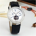 The timepiece is an extremely rare and important, water-resistant platinum wristwatch with 250-hour autonomy and power reserve indication in two sectors. Other features on the wristwatch include a visible one-minute tourbillon regulator, perpetual calendar and leap year indication.