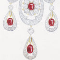 The exquisite emerald, ruby and sapphire jewellery sets gifted by her parents, as well as the diamond necklaces, tiara and the pear collier-de-chien, by the jewellery house Bolin, were all recorded and annotated by Kensia in the inventories offered by Bonhams. The notes simply read "from Mama and Papa for the wedding".