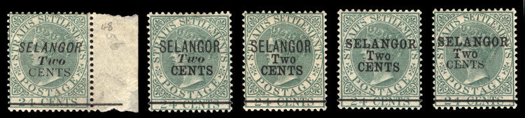 Malaya - Selangor 1891 2c on 24c green, set of 5 surcharges, SG44/8