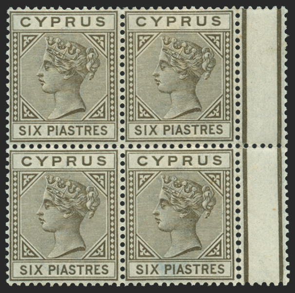 Cyprus 1892-94 6pi olive-grey, die II, block of 4 with interpane margin at right, SG36.