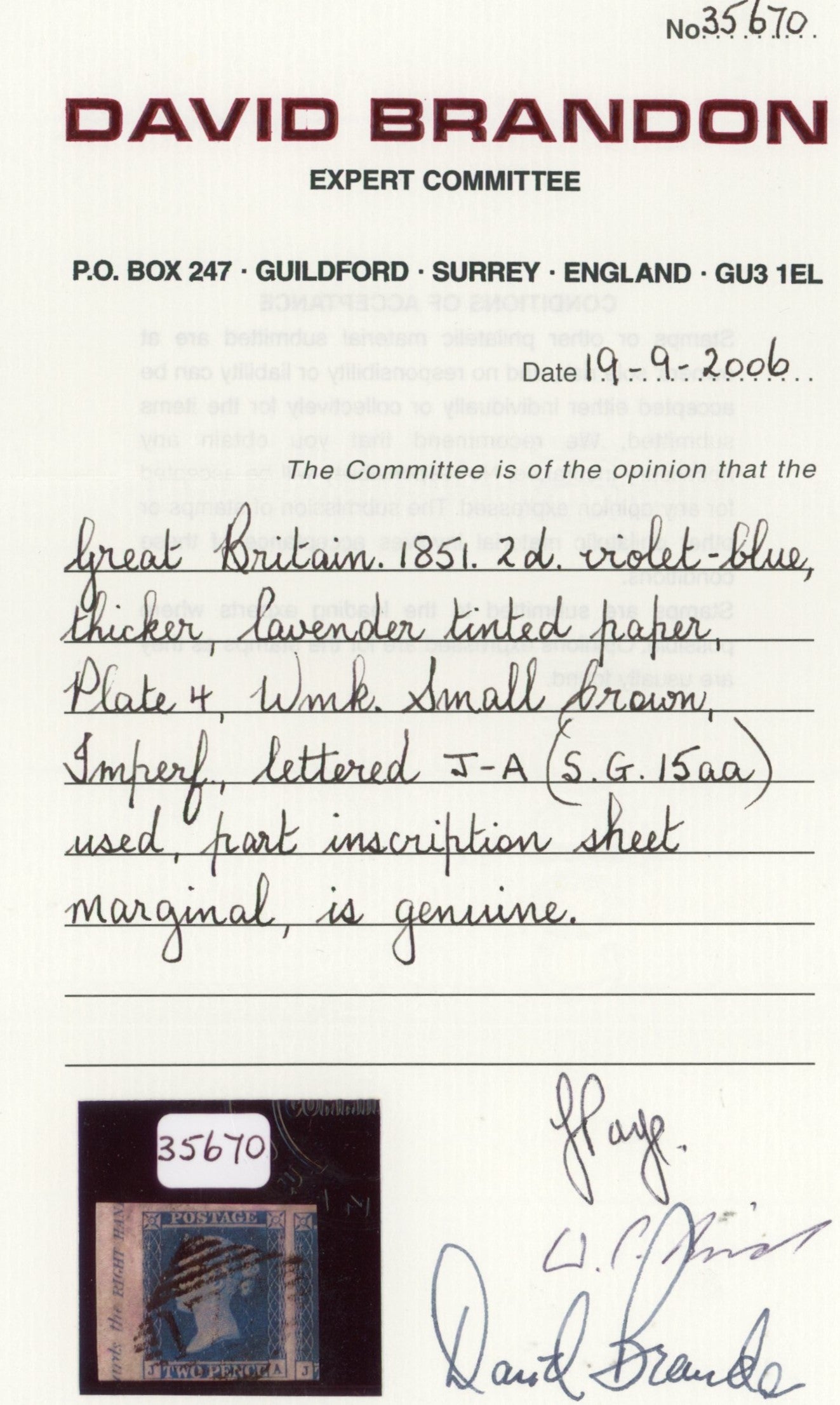 Great Britain 1851 2d violet blue Plate 4, SG15aa.