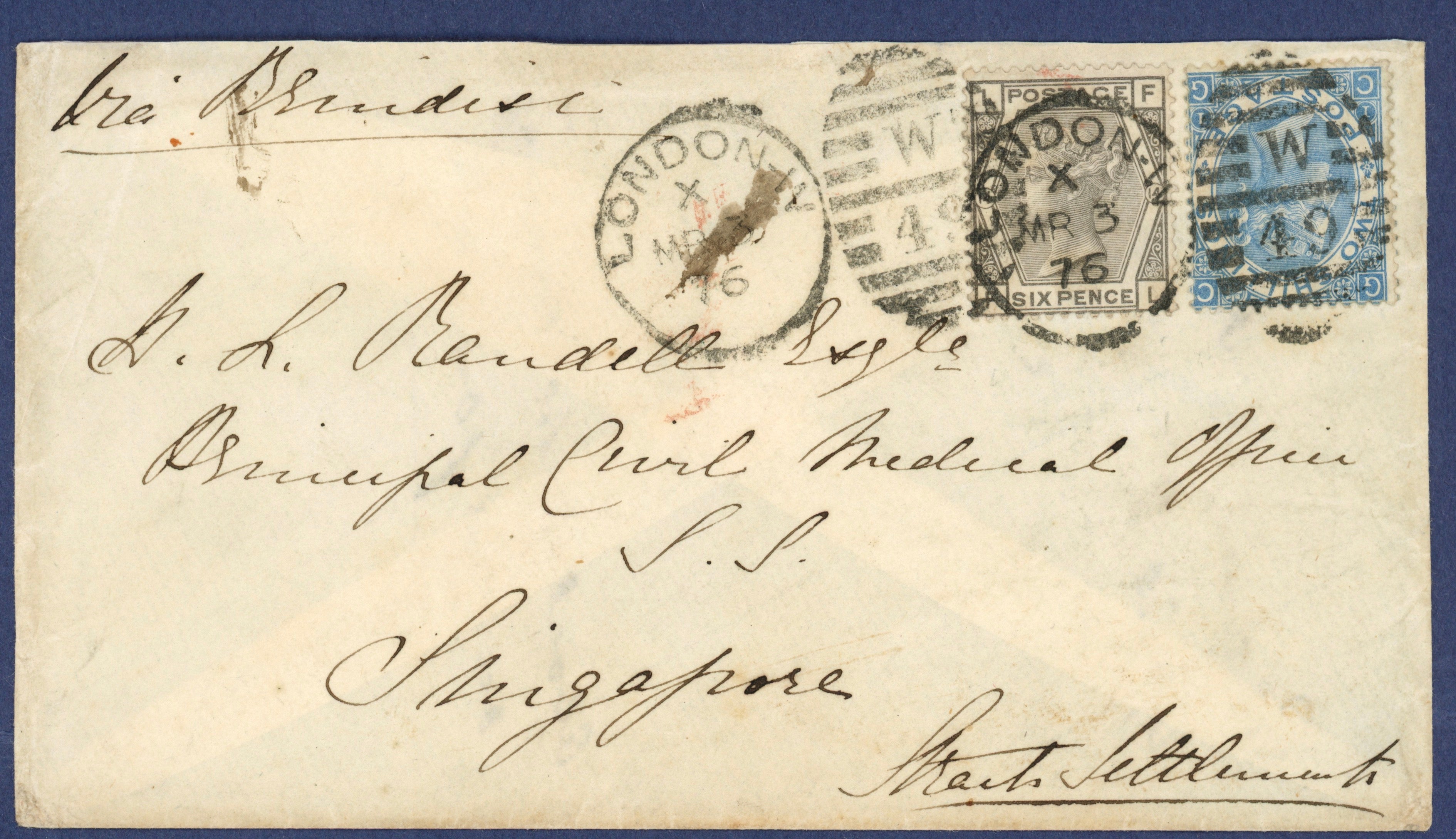 Great Britain 1876 Overseas mail to Singapore, SG120/147