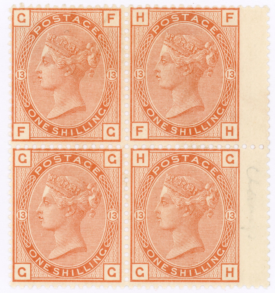 Great Britain 1880 1s orange-brown Plate 13, (Watermark Spray), SG151.