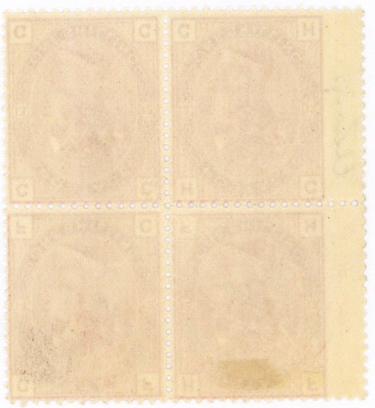A superb unused, with original gum, right hand wing margin block of four lettered FG-GH, lightly mounted on top two stamps only.