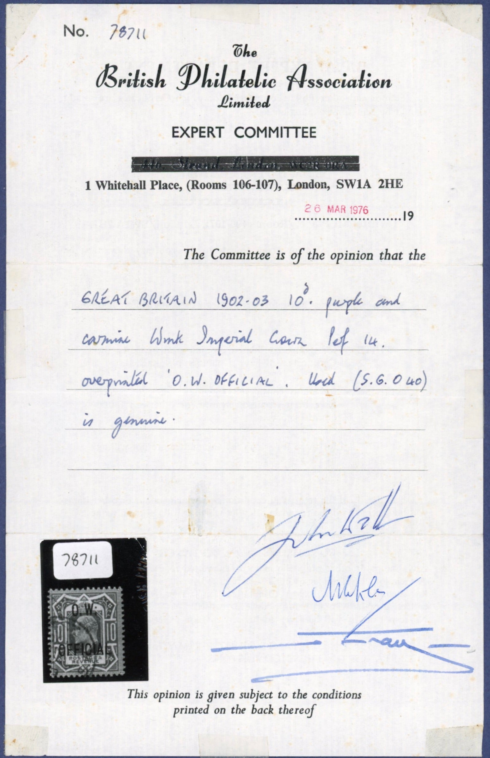 Great Britain 1902 10d dull purple & carmine (O.W. Official), SGO40.