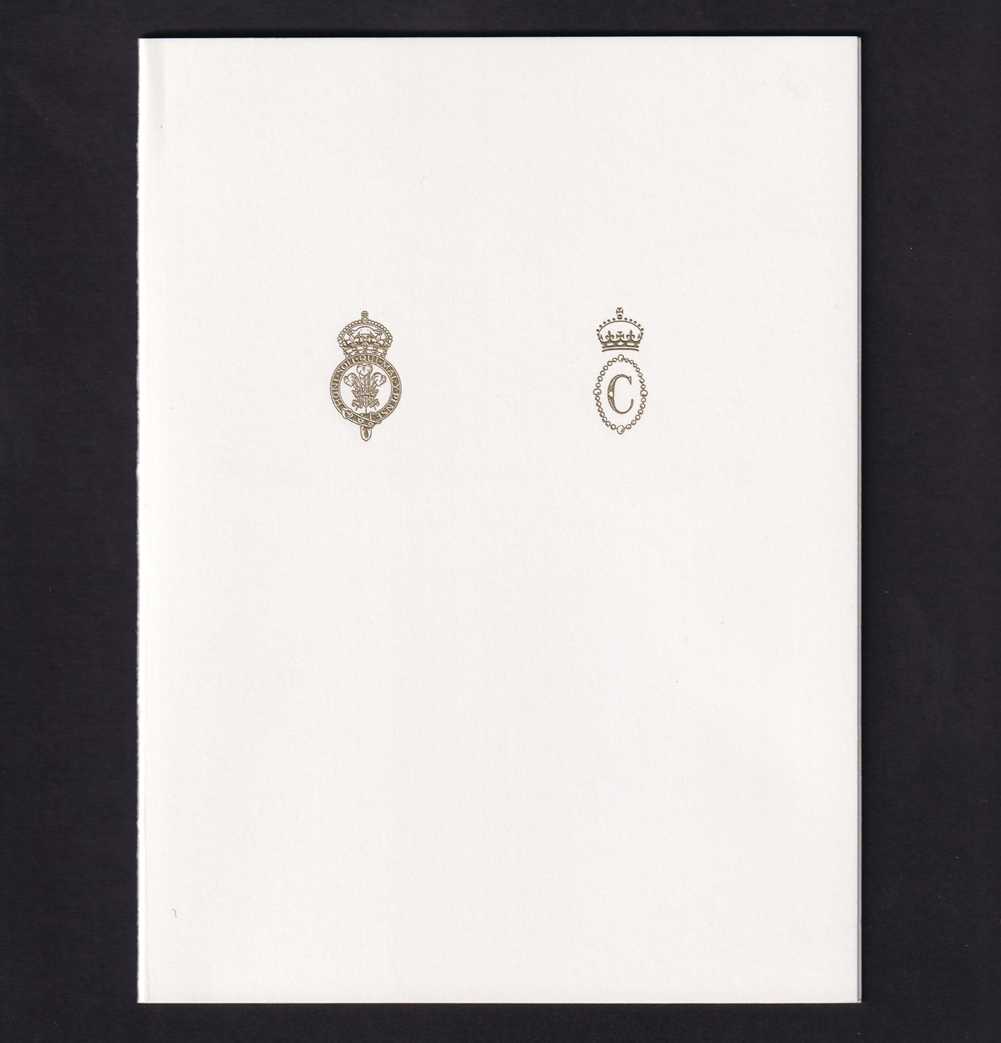 Inside features an affixed colour photograph of Charles and Camilla cross-country skiing in Scotland.