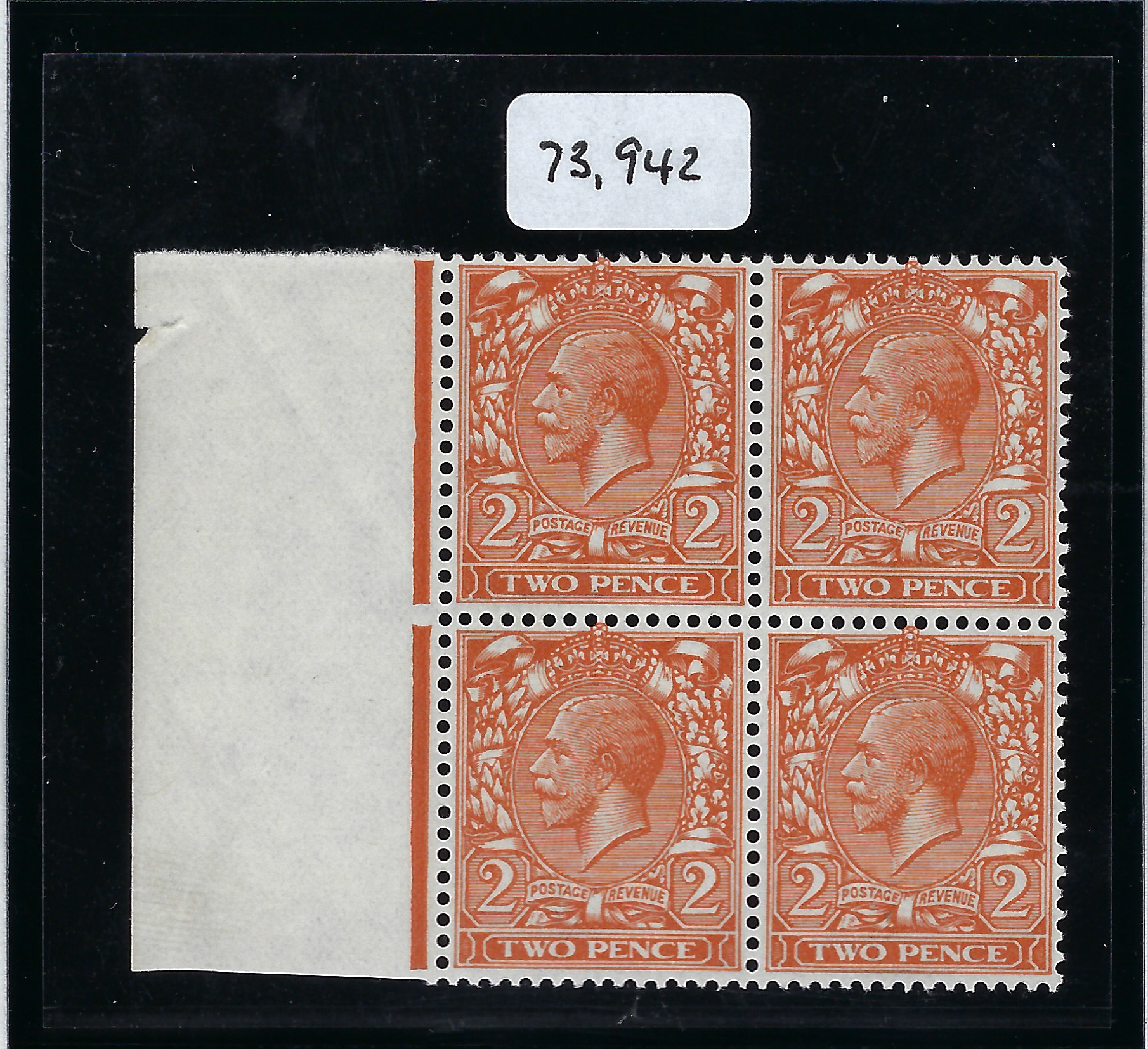 The Stanley Gibbons catalogue price for a single stamp is £2,250. No premium is therefore attached to the price to reflect substantial higher rarity factor from being a block of four, in pristine condition and with left hand margin.