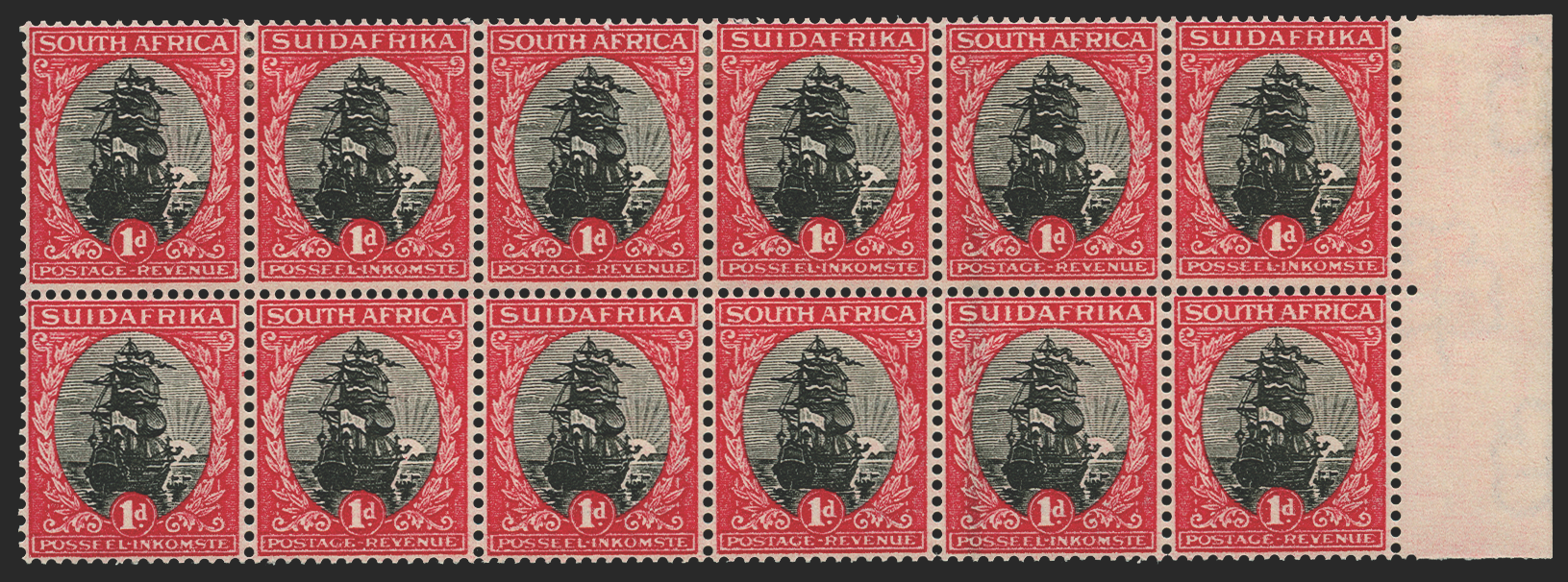 SOUTH AFRICA 1929 (c.) 1d black and carmine "Darmstadt" trial printings, SG43var