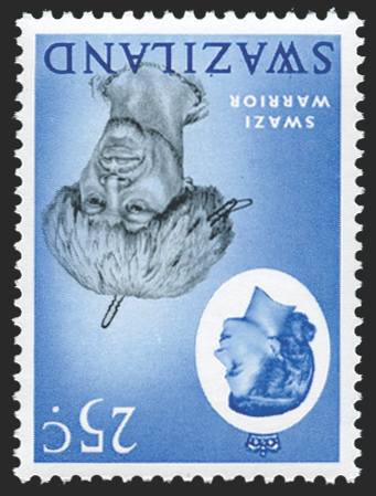 Swaziland 1962-66 25c black and bright blue, "Swazi Warrior", variety WATERMARK INVERTED, SG102w.