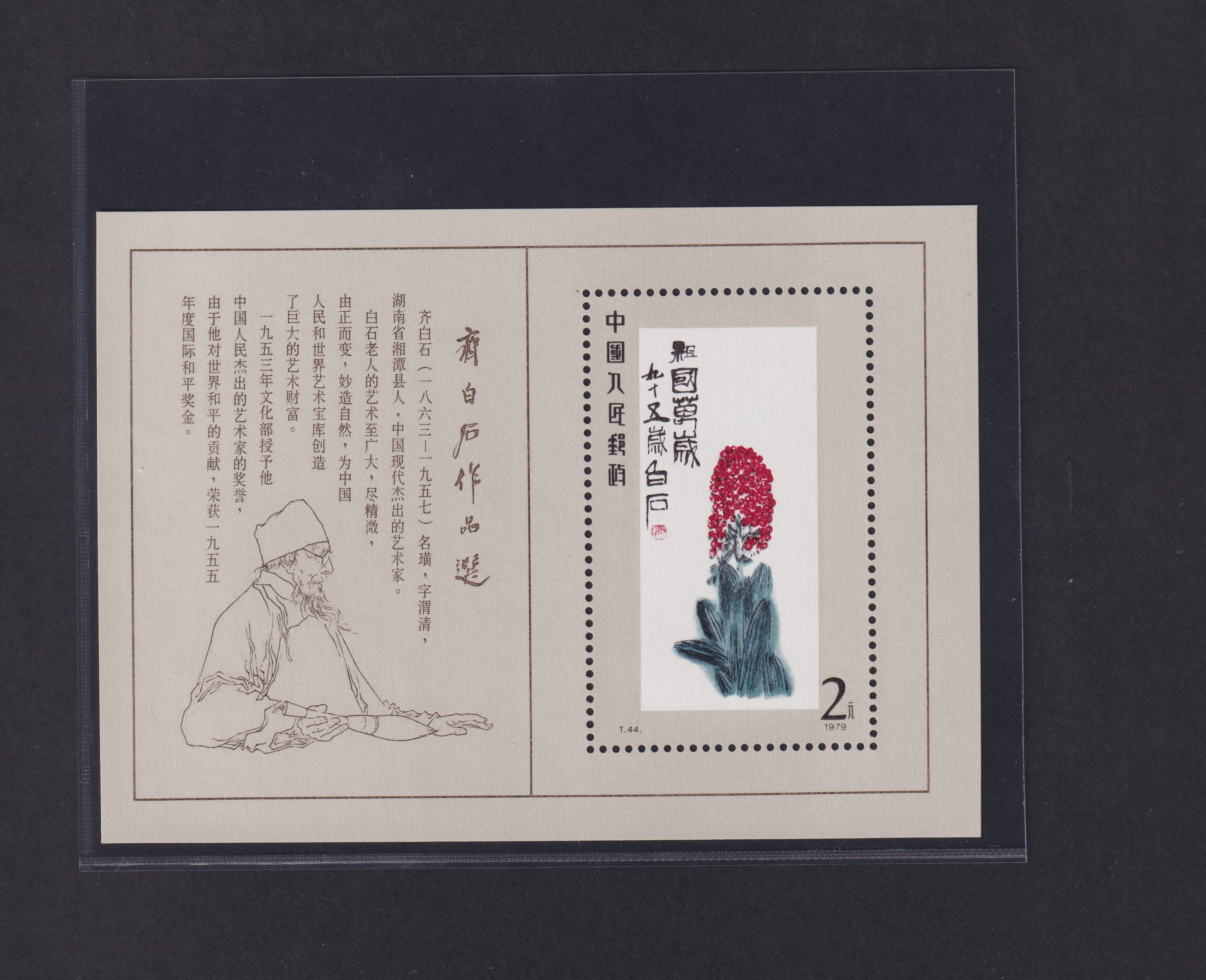 China 1980 People's Republic China 2 yuan Block 22 Paintings of Qi Baishi miniature sheet, SGMS2955.