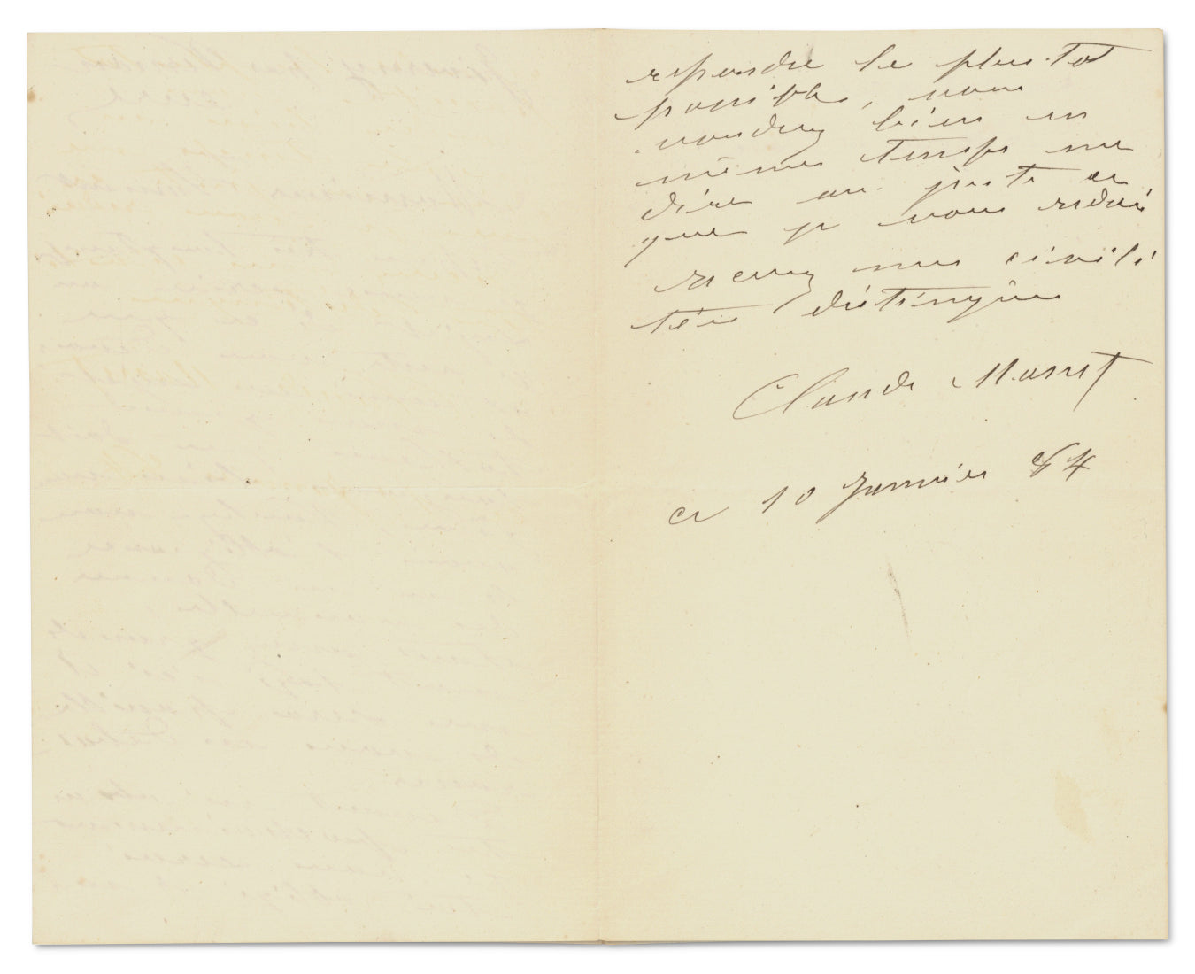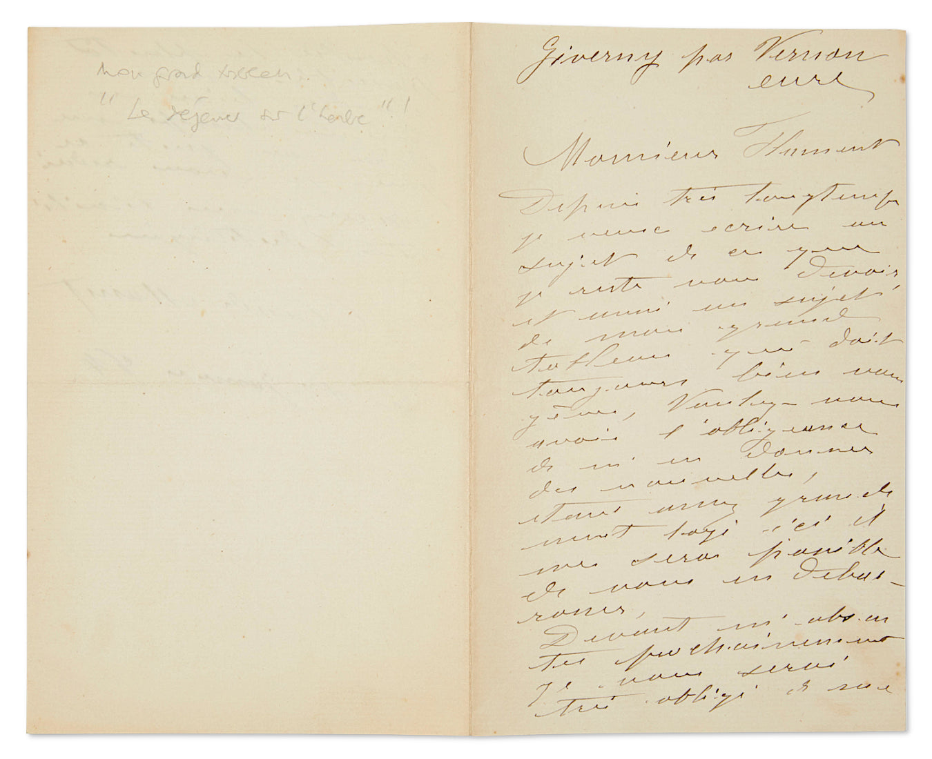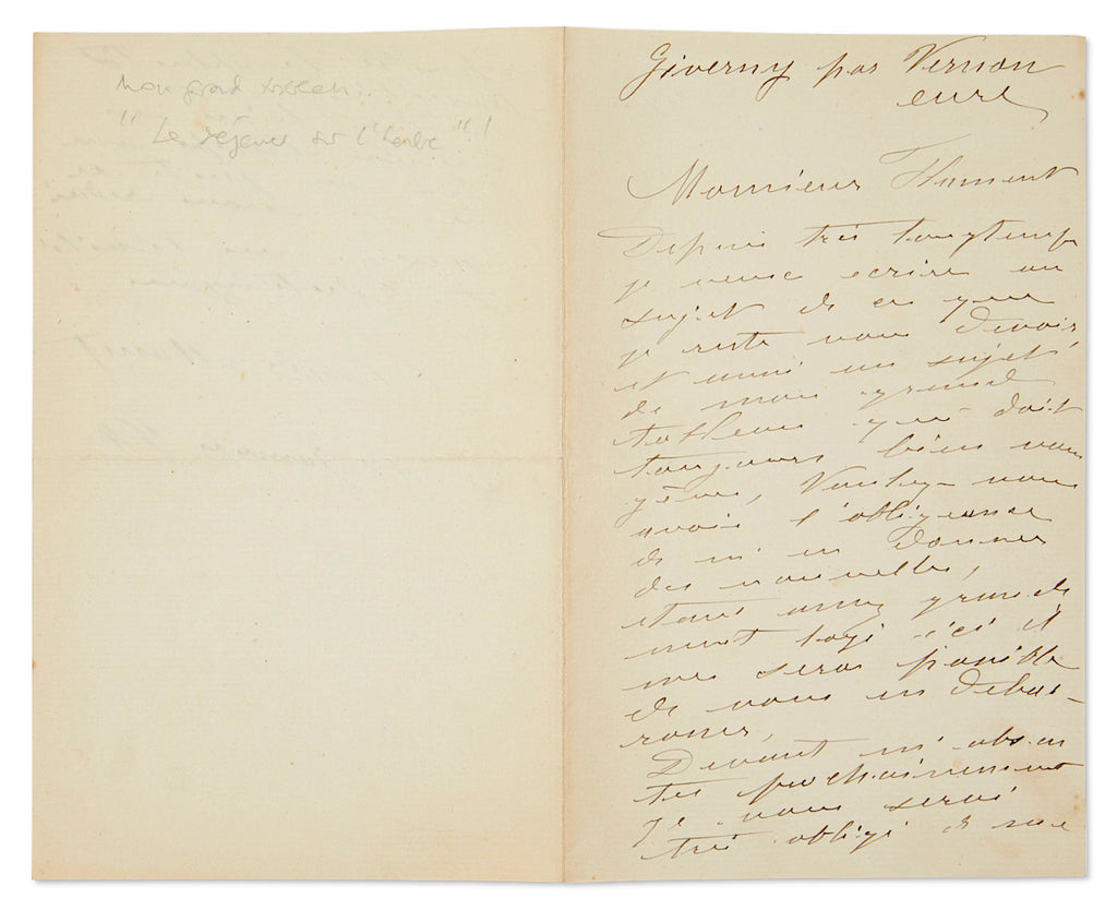 A letter written by Monet in January 1884 to his former landlord Alexandre Flament, requesting the return of his monumental painting Le Déjeuner sur l'herbe.