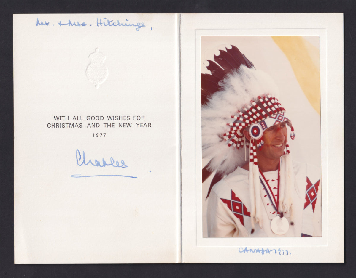 An official Royal Christmas and New Year card sent by Charles III, then Prince of Wales, in 1977.