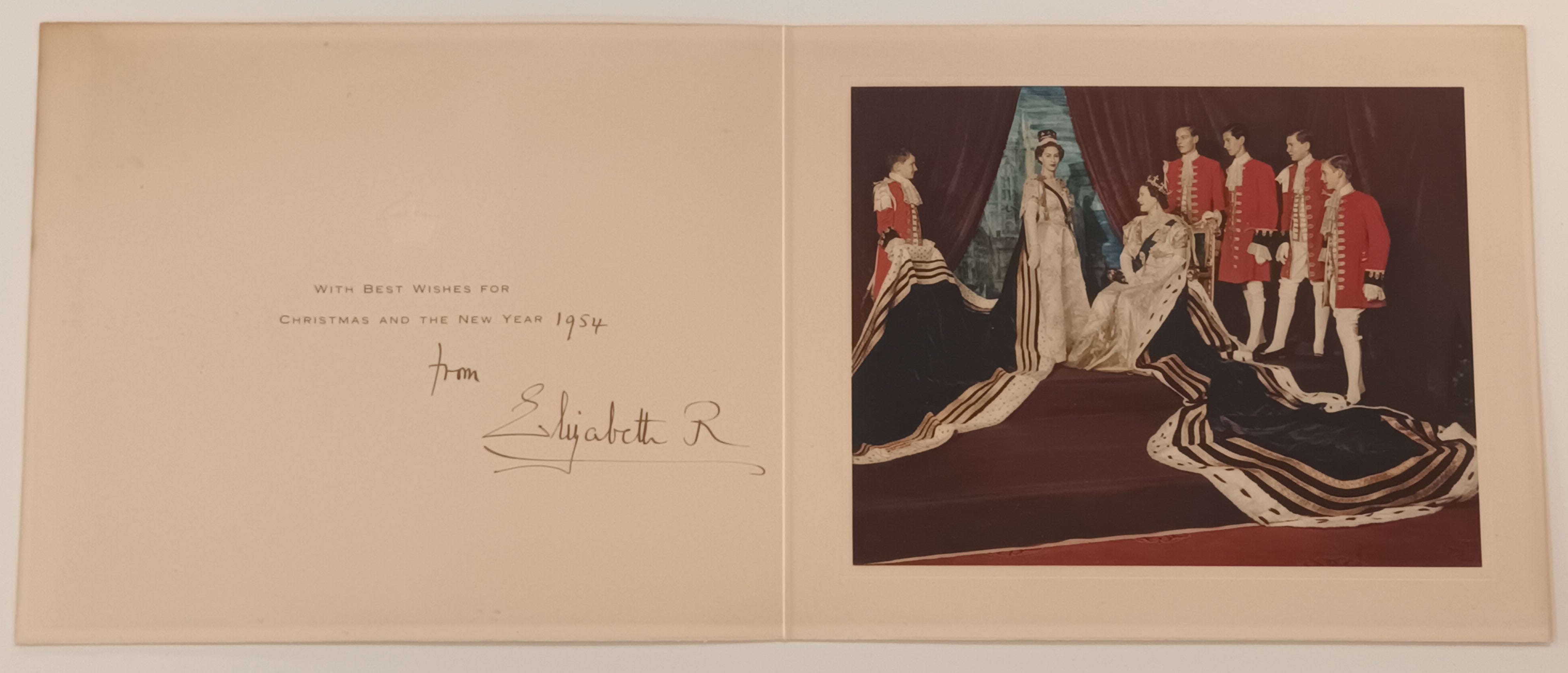 Queen Mother "Coronation Day" 1954 signed Christmas card
