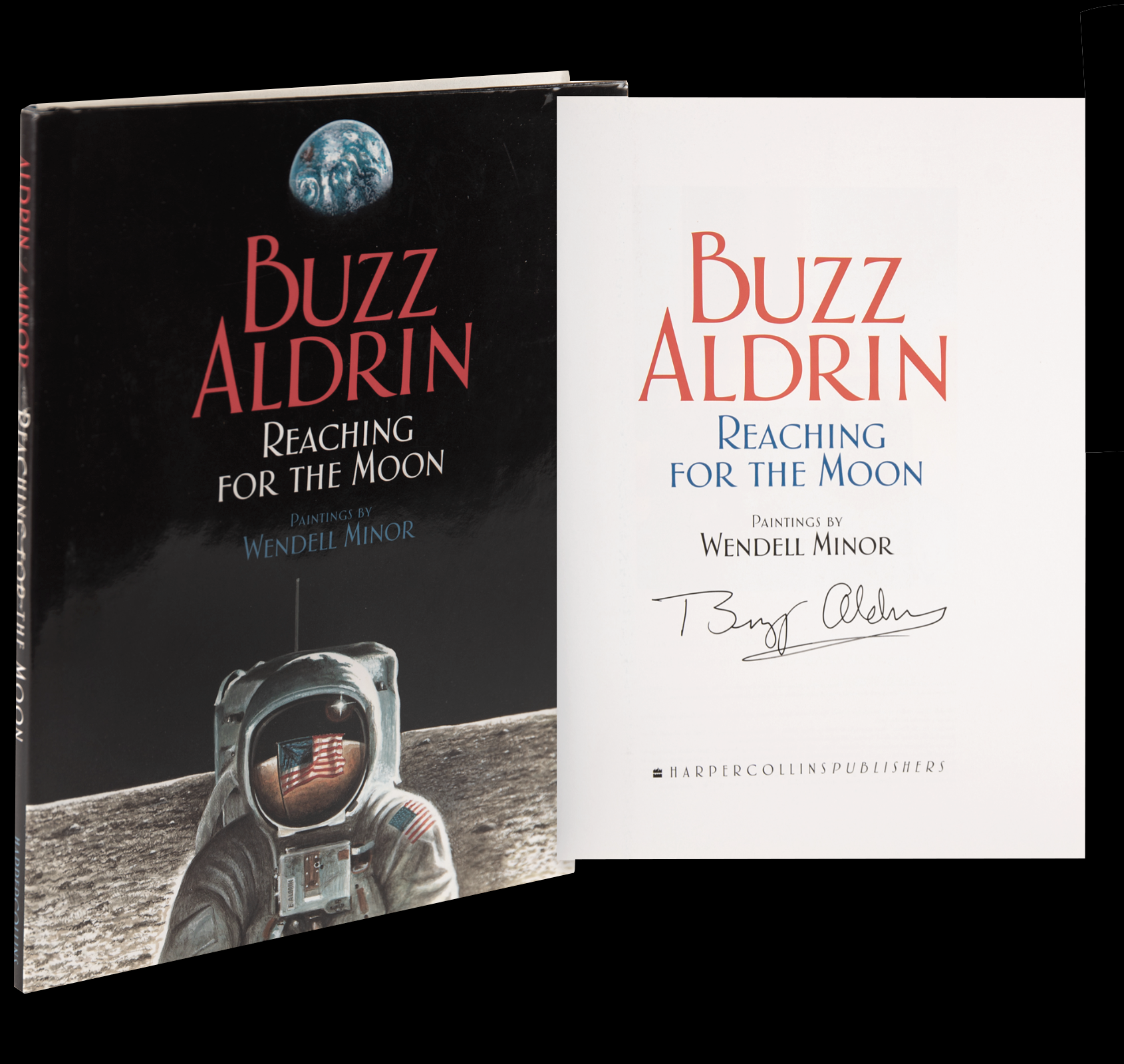 A signed, first-edition later printing of Reaching for the Moon by Buzz Aldrin with illustrator Wendell Minor.