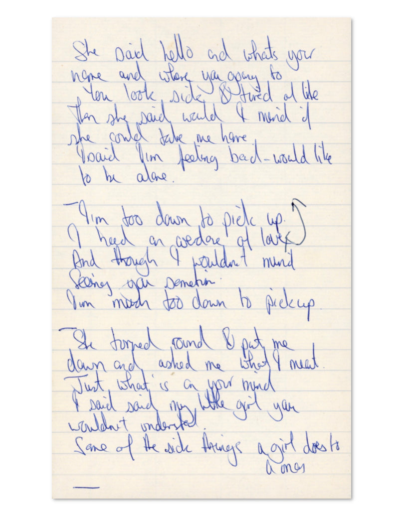 This unsigned set of lyrics is believed to date from 1965, during the earliest days of Jagger's career as a songwriter.