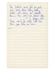 A small sheet of lined paper, featuring handwritten lyrics by Mick Jagger on both sides. Jagger has written the lyrics in blue ballpoint ink.