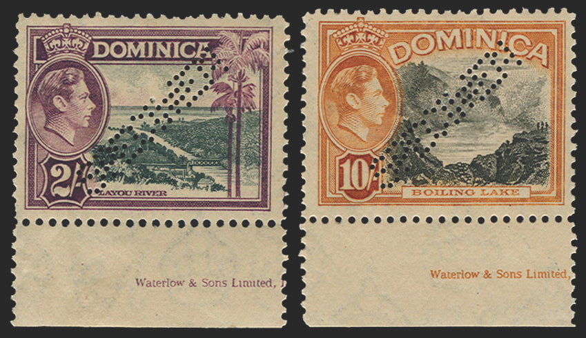 Dominica 1938-47 2s slate and purple and 10s black and brown-orange SPECIMEN, SG106as/8as