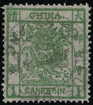 China 1878 1ca deep green, "Candarins" thin paper, 2½mm spacing, SG1b.