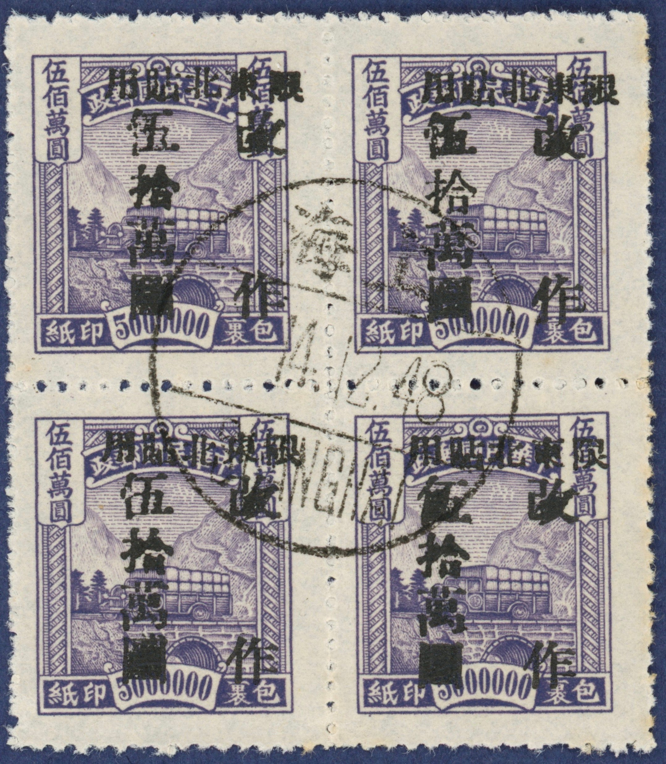China 1948 (Oct) North East Provincial Issues, Peiping Central Print, Parcel Post $500,000 on $5,000,000 grey-lilac, SGP84, Chan NEP7.