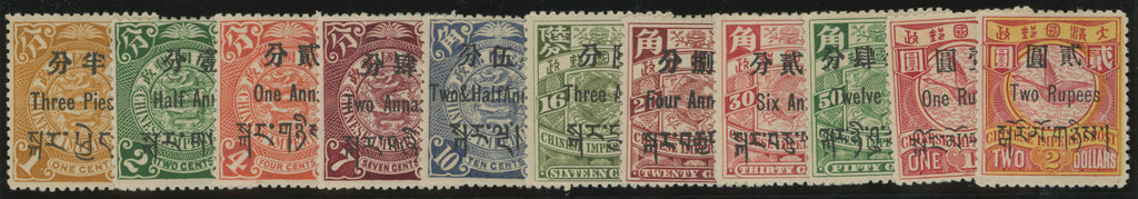 Tibet Chinese Post Offices 1911 set of 11 to 2r claret and bright yellow surcharged at Shanghai, SGC1/11.