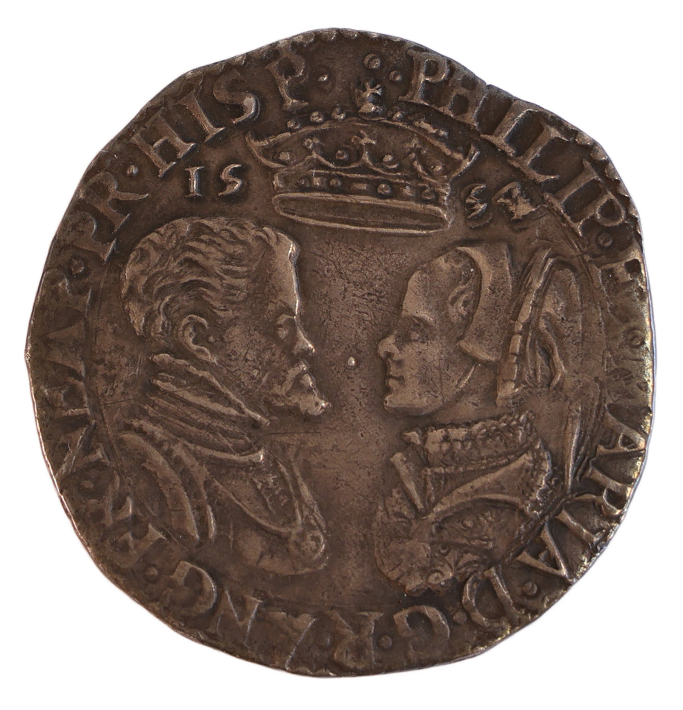 Obv. Large crown over busts of Philip and Mary vis a vis, date. ‘PHILIP ET MARIA D G RANG FR NEAP PR HISP’.