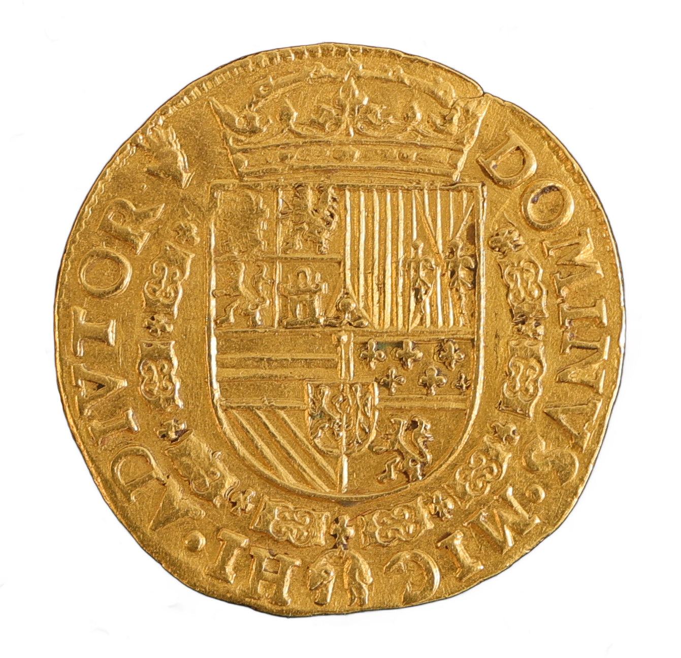Reverse: Crowned arms of Spain, ‘DOMINVS MICHI ADIVITOR’ (The Lord help me).