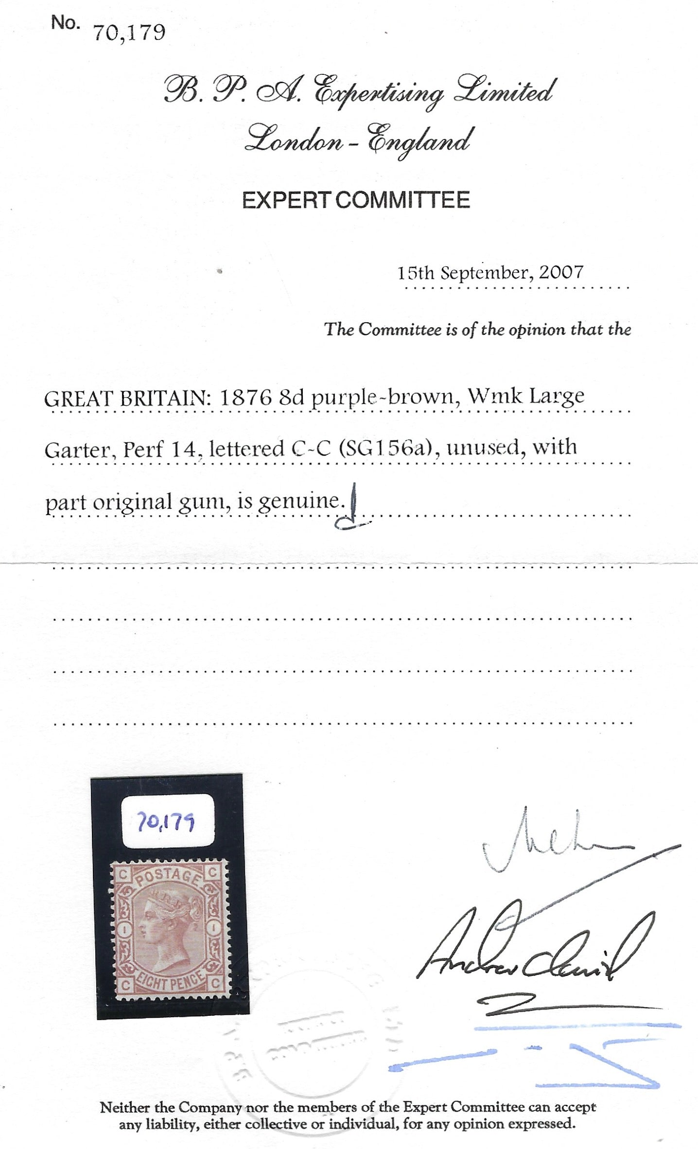 Great Britain 1876 8d purple-brown Plate 1, SG156a