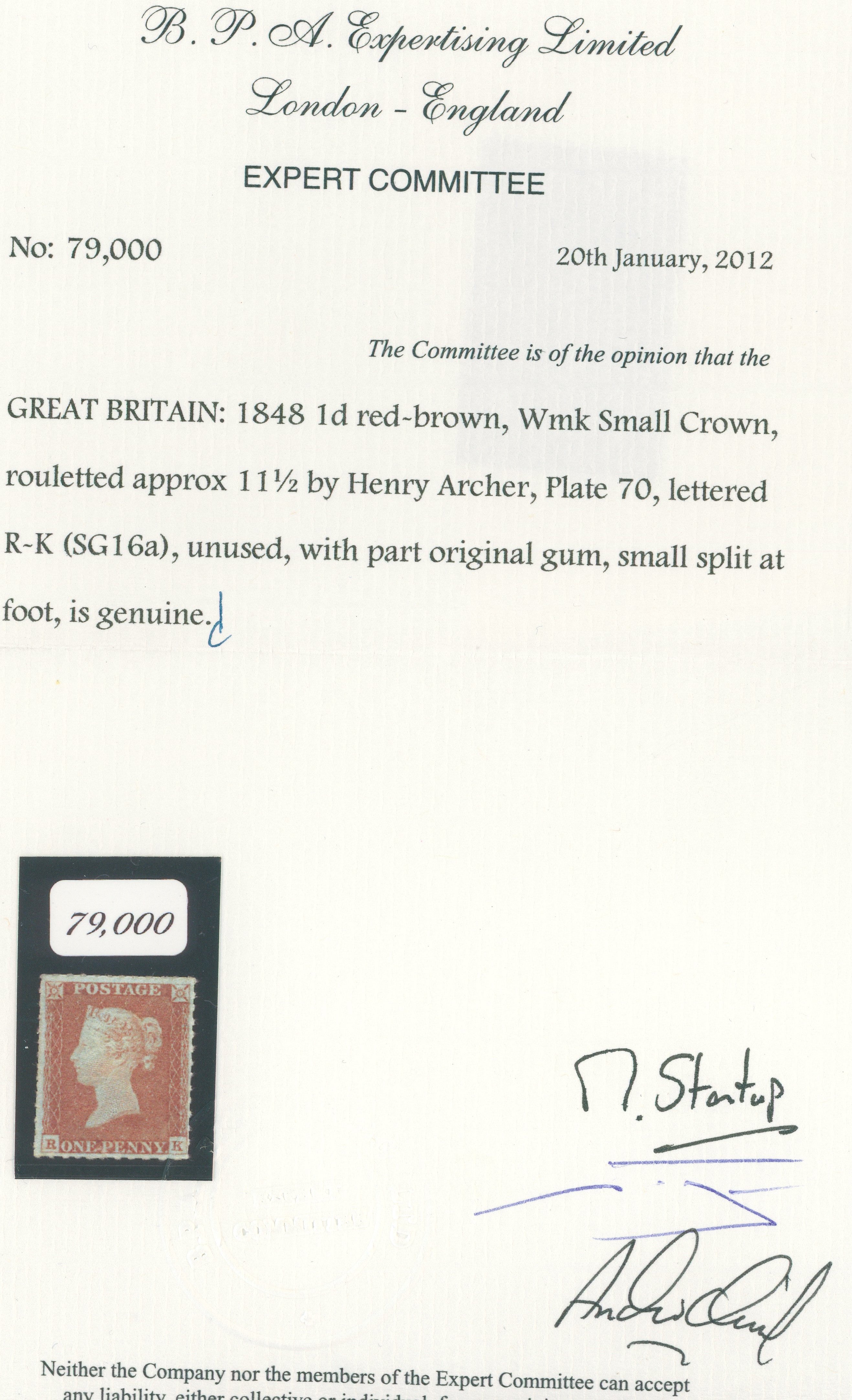 Accompanied by a 2012 British Philatelic Association (BPA) Certificate of authenticity.