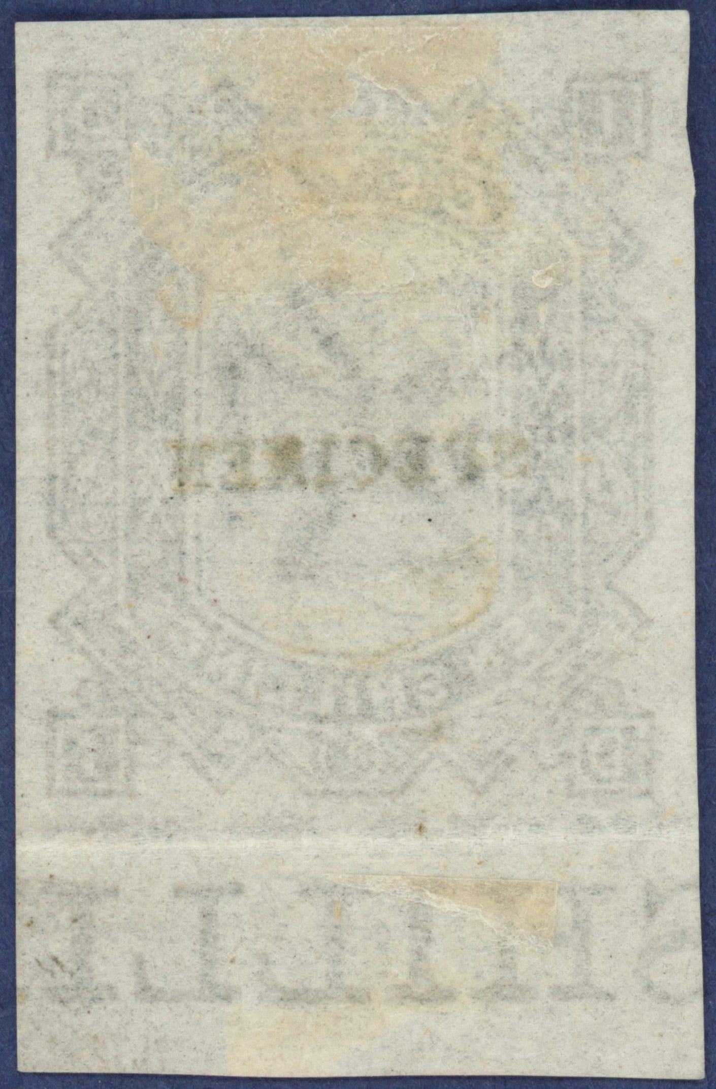 A very fine unused imperforate bottom marginal example with original gum, lettered 'DI' in brown overprinted "SPECIMEN" type 9.