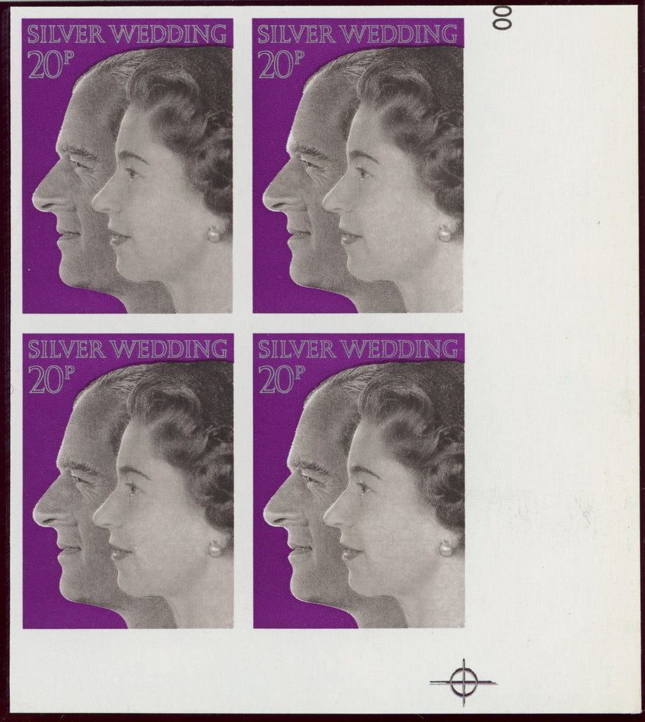 Great Britain 1972 20p Royal Silver Wedding (“Rembrant” machine) imprimaturs, SG917var