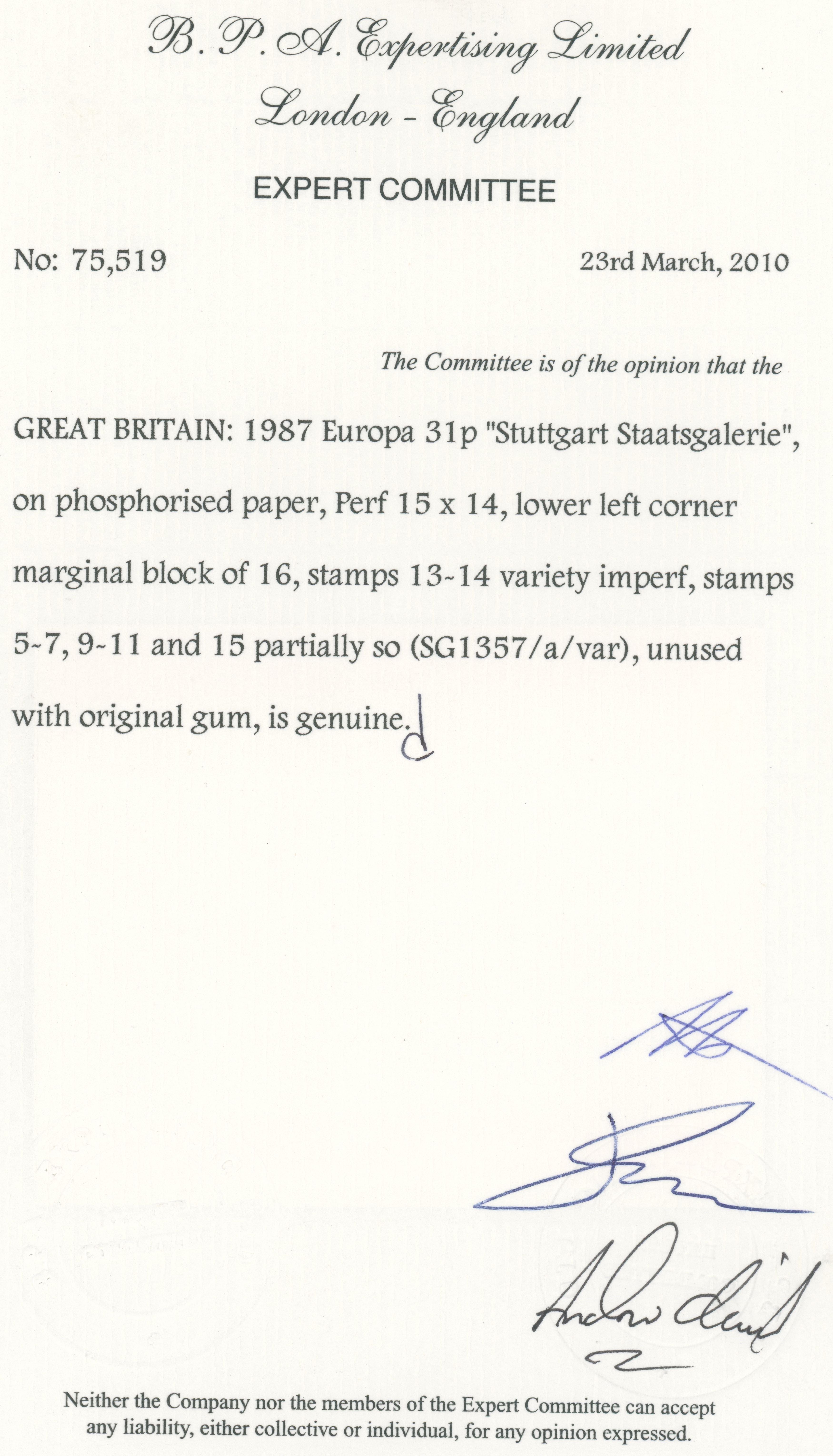 Accompanied with a 2011 British Philatelic Association (BPA) Certificate of authenticity.