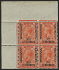A brilliant unmounted mint positional block with full original gum. The albino impression can be found 2mm above and to left of the inked surcharge.