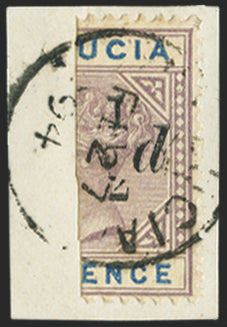 A fine used example tied to small piece by large part ST LUCIA circular date stamp, dated 'FE 27 94'.